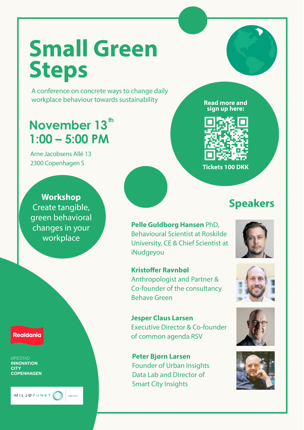 Bæredygtighed er vigtigt. Men når det kommer til at ændre vores vaner i hverdagen, bliver begejstringen ofte lidt mindre. Og det er netop det dilemma, vi vil dykke ned i på konferencen "Small Green Steps".
