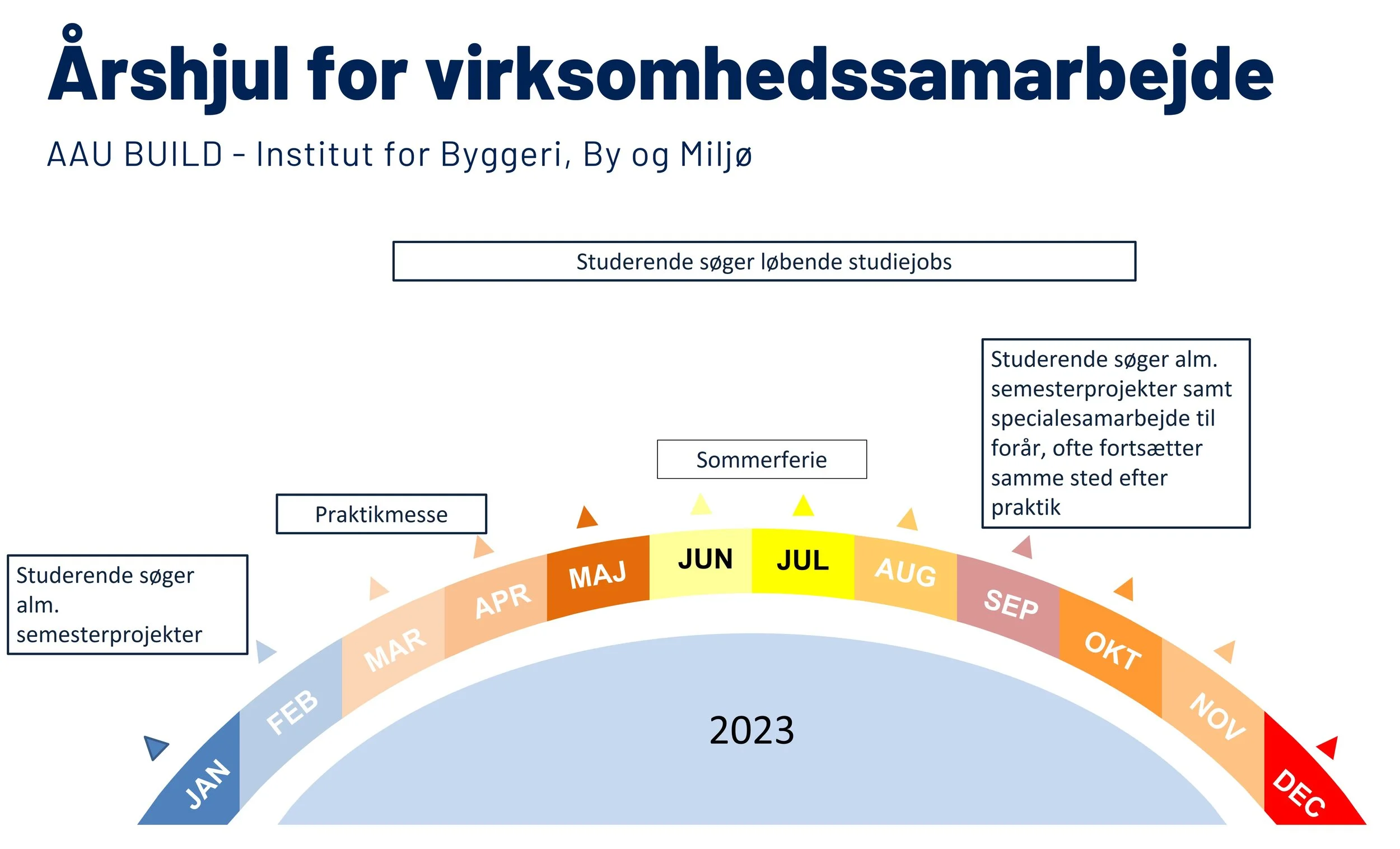 Årshjul for de forskellige uddannelser, som et vigtigt værktøj for samarbejde med de studerende på de mange studielinjer. Ved brug af årshjulet kan virksomheder og andre organisationer planlægge de projekter, de gerne vil samarbejde med de studerende om, så de passer ind i studieåret.